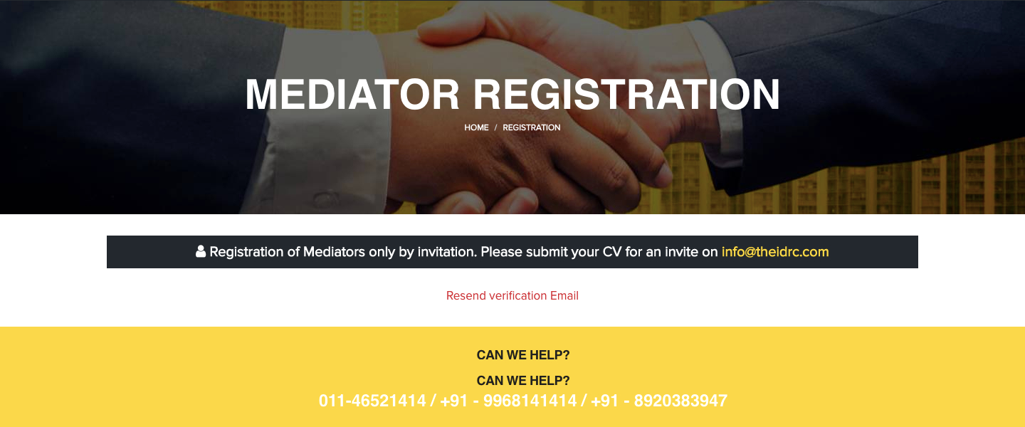 IDRC Empanels Mediators only by way of Invitation.
