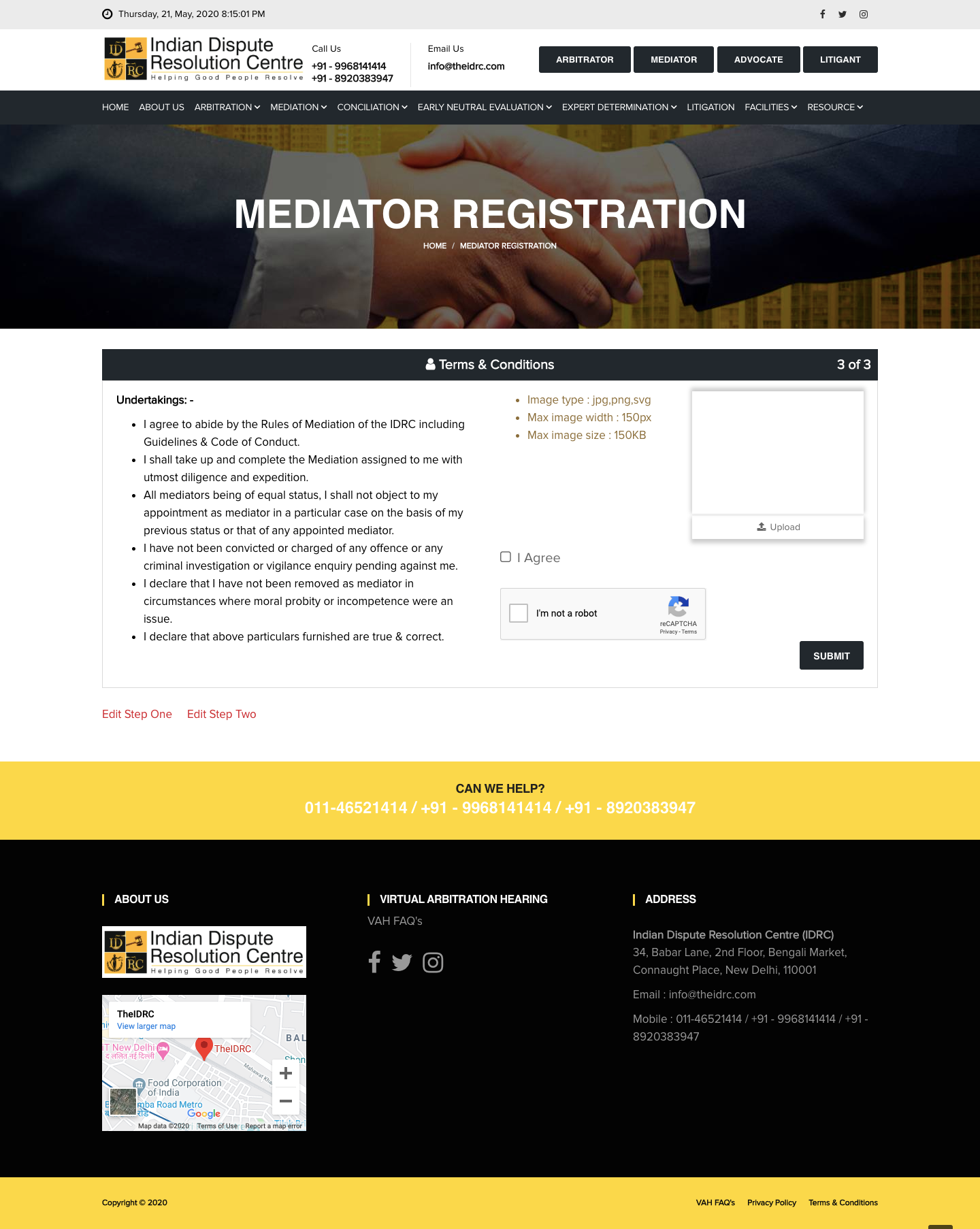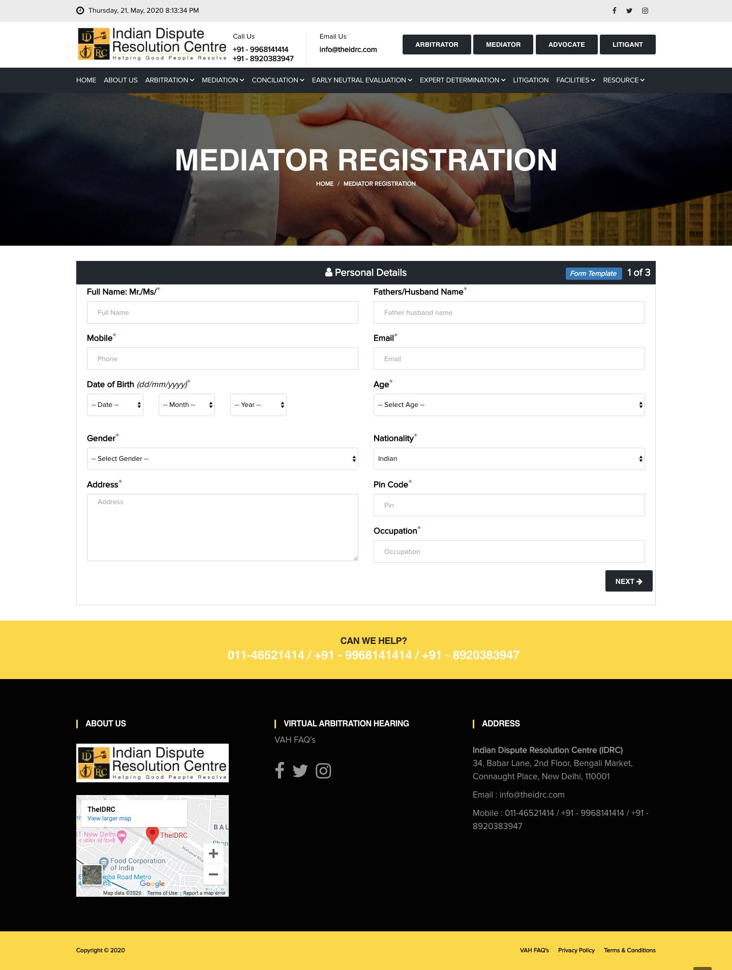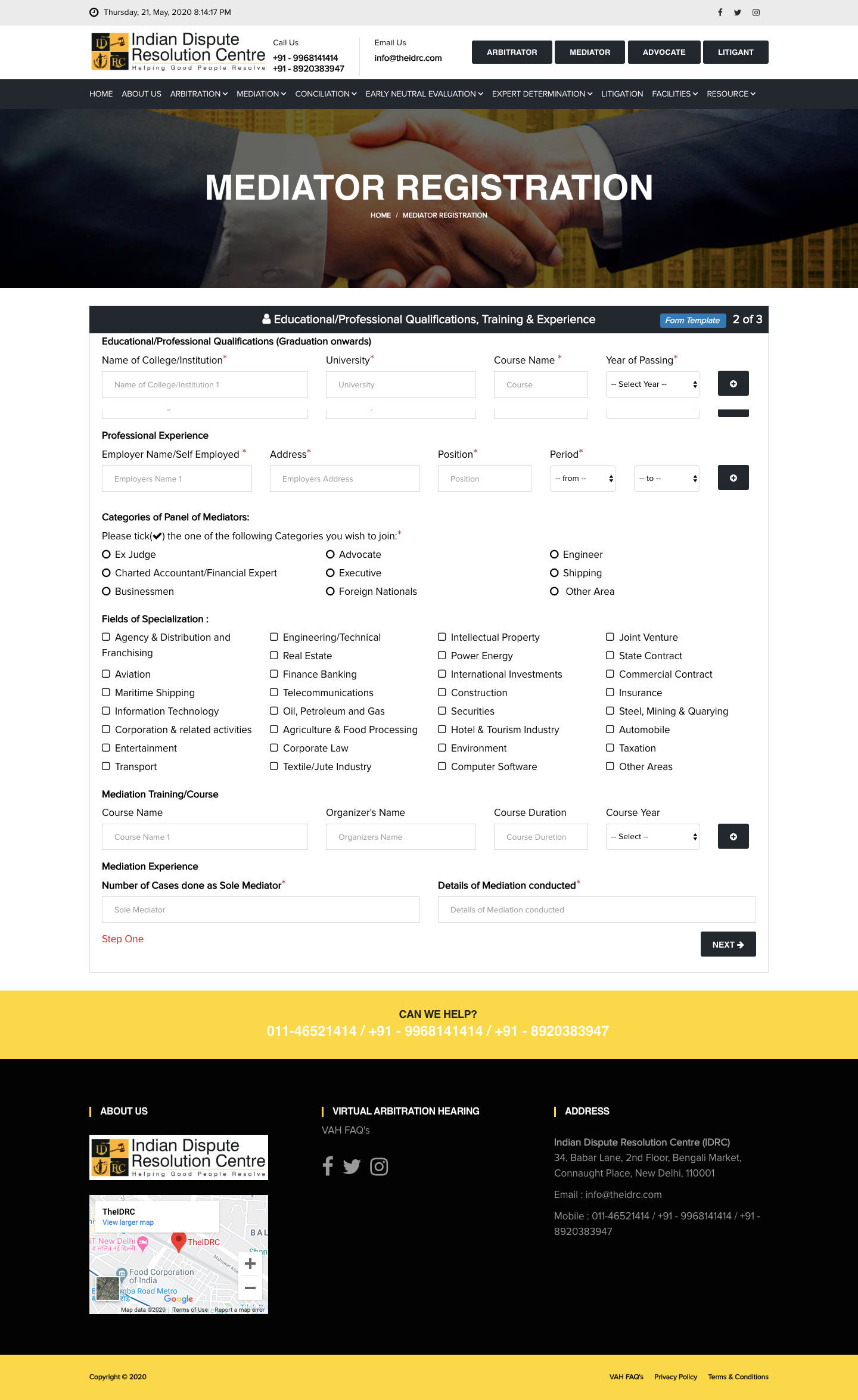 Once you receive the invite link with your pre-filled complete name, Login to the same which will take you to https://theidrc.com/mediator/registration