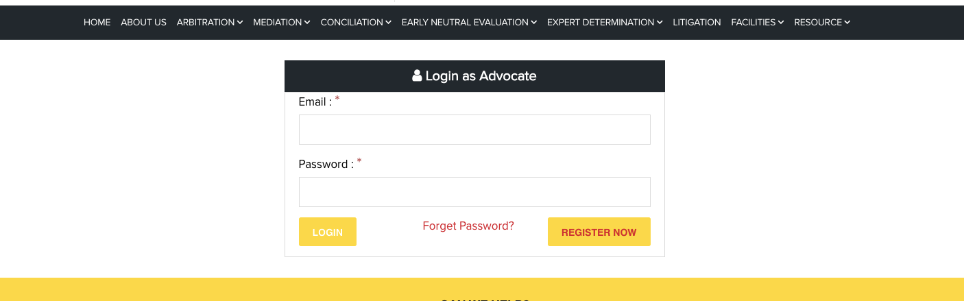Any Advocate or a Law Firm can register with IDRC by clicking on ADVOCATE button on IDRC home page