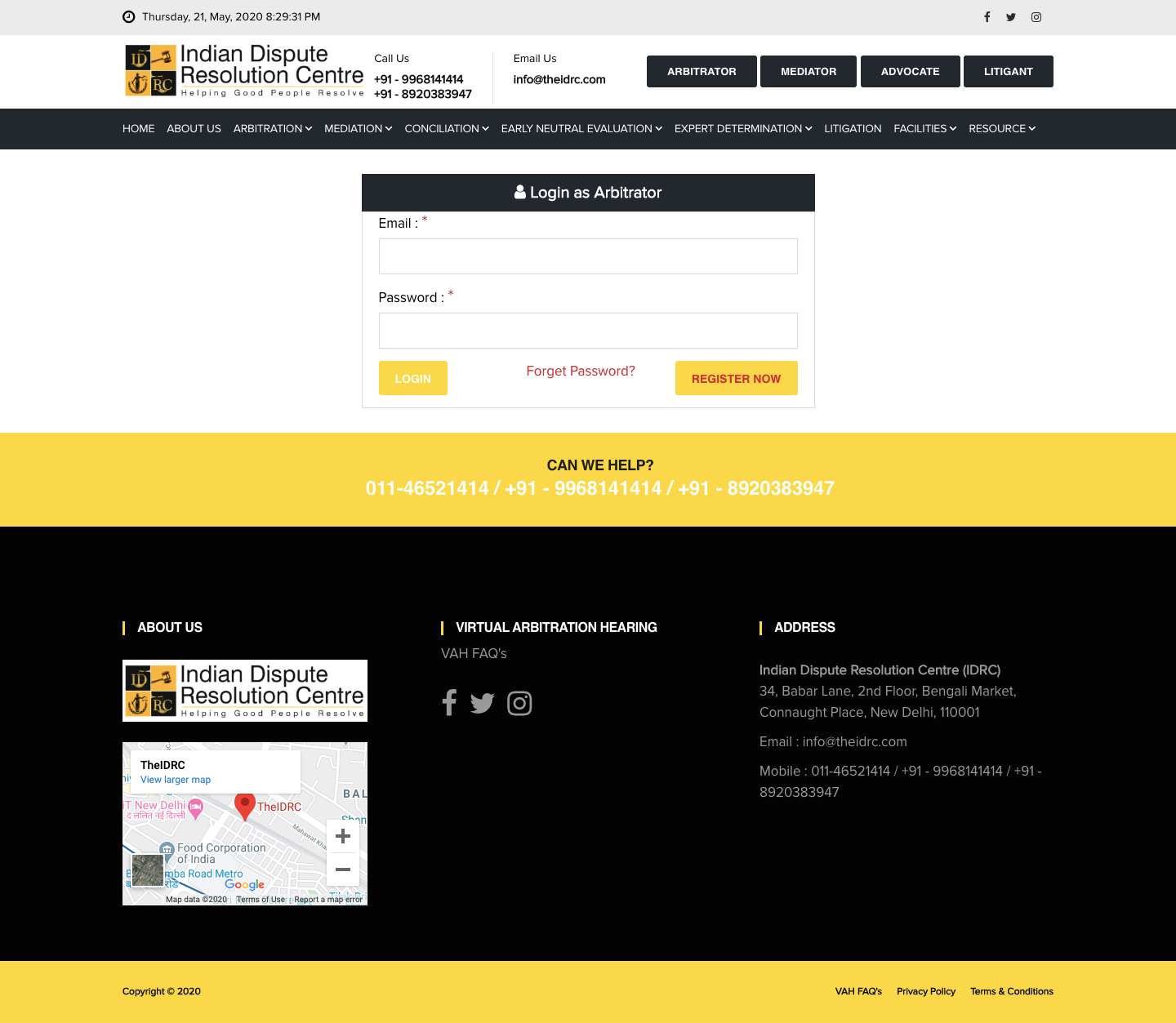 Once you receive the invite link with your pre-filled complete name, Login to the same, which will take you to https://theidrc.com/arbitrator/registration